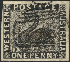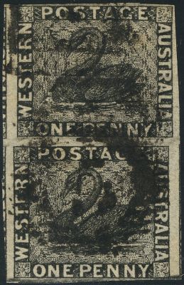 Australian State, Western Australia Genuine« Back1854 Western Australia, #1 vertical pair, Genuine![]() (1.) The two points of the "W" are cut off square at the bottom. (2.) The top limb of the first "E" in Western is much longer than the middle one. (3.) The center of the "O" of Postage is a pointed oval. (4.) The top of the first "A" of Australia broad and square. (5.) The "U" of Australia is rounded at the bottom. (6.) The bottom limb in the "E" of One is much longer than the top limb. (7.) The letter labels are not a solid color but have a white lattice work in them which can be seen between the letters, especially before the "P" of Postage where it appears as a "W" laid on its side. (8.) The first and last letters of Australia are very close to the ends of the label. (9.) "Swan" watermark. (10.) Exp: APS certificate. (11.) Notes: do (12.) Ref: Rev. Earee. |