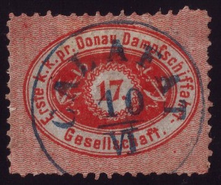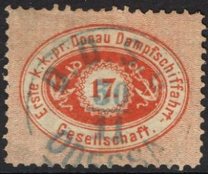 Austria, Danube Steam Navigation Company (DDSG) ForgeryDDSG, Forgery 1, per Hurt & Kelly![]() (1.) Perf 12.5. (2.) No dot after the value. (3.) No shading in the anchors. (4.) "7" has a curly top and a round bottom. (5.) Exp: T.Balm |