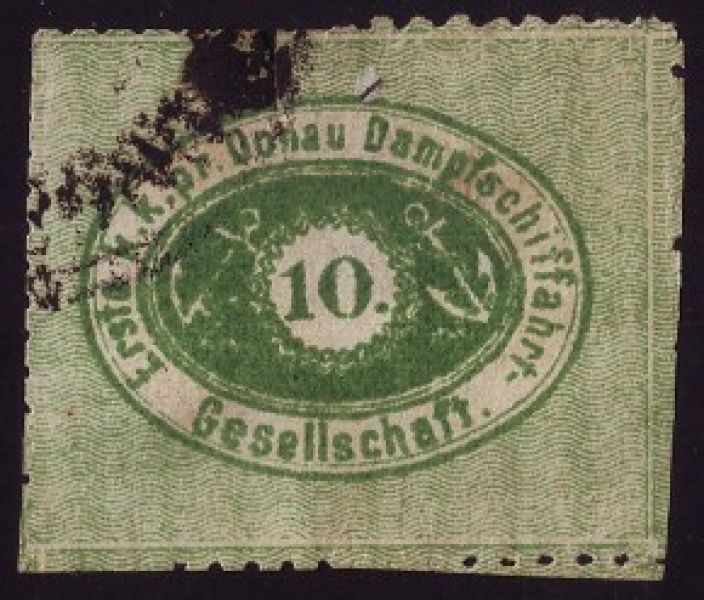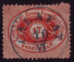 Austria, Danube Steam Navigation Company (DDSG) Genuine« BackApril 15, 1866, DDSG, Michel #1A, used, Genuine original, Odessa, Russia cancel![]() (1.) Perf 12 original. (2.) Type 3 (scar at 9:00 o'clock at left anchor ring). (3.) Exp: APS cert. Plating Info: T. Balm. April 15, 1866, DDSG, Michel #1A, used, Genuine original, Calafat, Romania cancel![]() (1.) Another perf 12 original. (2.) Type 3 (scar at 9:00 o'clock at the left anchor ring). (3.) Exp: T.Balm April 15, 1866, DDSG, Michel #1A, Genuine original, Lom Palaka, Bulgaria cancel![]() (1.) Perf 12 original. (2.) Type 1 (slightly flat top on "c" of Dampfschiffahrt, also flat top on "s"). (3.) Exp: T.Balm April 15, 1866, DDSG, Michel #1A, used, Genuine original with a natural paper crease, Rustzuk, Bulgaria cancel![]() (1.) Perf 12 original. (2.) Type 8 (hairline mark beneath thin line under "a" of Donau, also weak break in thin line under "Da" of Dampf. (3.) Exp: T.Balm 1878, DDSG, Reprint I![]() (1.) Rough perf 9.5. (2.) Die II. All the "f's" have rounded tops. (3.) Exp: T.Balm 1880, DDSG, Reprint II, All mail service had ceased by 1880. This was printed for sale to collectors.![]() (1.) Rough perf 9.5. (2.) Printed from the original Die I. (3.) Type 3 (scar at the left anchor ring). (4.) Secret marks still remain. (5.) Exp: T.Balm |