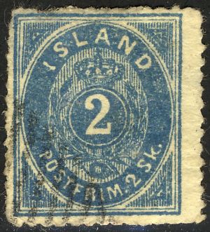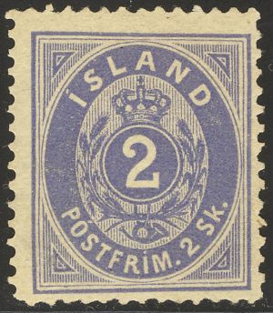 Iceland Genuine« Back1873, Iceland, #1, Genuine![]() (1.) Watermark 112 (crown). (2.) perforated 14 x 13.5. (3.) Dot over the "i" of "Iceland" is a little to the right. (4.) There is a dot over the "O" of "POST__". (5.) There are 24 vertical lines in the upper left triangle. (6.) The upper right triangle has 26 lines. (7.) The lower left triangle has 28 lines. (8.) The lower right triangle has 24 lines. (9.) Exp: APS cert. Notes: do. Ref: Rev. Earee. |