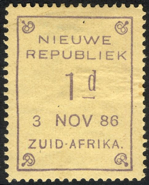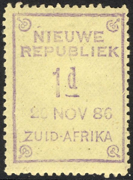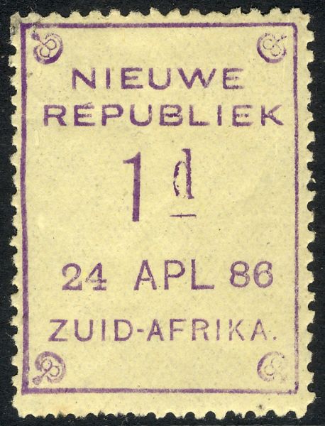 New Republic Genuine« Back1886 New Republic, Sketch of Identifying Features of Genuine Stamps, (click to enlarge)![]() (1.) Splinter near the end of the top branch of the first "E" in Republiek. (2.) The end of the lowest branch of the second "E" in Republiek is beveled back. (3.) Sketch from Gerrit H. Jonkers book. (4.) Notes: do. 1886 New Republic #1 Genuine, 24 Apl 86![]() (1.) Dated "24 Apl 86". (2.) Splinter near the end of the top branch of the first "E" in Republiek. (3.) Bevel at the end of the lowest branch of the second "E" in Republiek. (4.) The letters of "Nieuwe Republiek" are 2 mm high. (5.) There is a period after "Afrika". (6.) Exp: do. (7.) Ref: Gerrit H. Jonkers. |