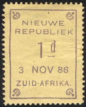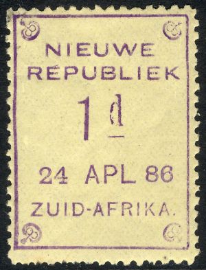 (1.)There are two identifying features of genuine New Republic stamps. (First) There is a splinter near the end of the top branch of the first "E" in Republiek. (Second) The end of the lowest branch of the second "E" in Republiek is beveled back. (2.) Gerrit H. Jonkers article states that he has examined many New Republic stamps. In a very few cases one or the other of these two identifying features has been missing, but never both.