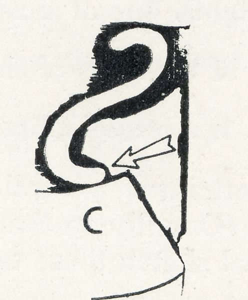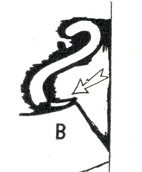 Samoa Genuine« BackFrank Aretz Sketch A from his book "Know Your Stamps"![]() (1.) "Swan Neck" ornament at the right end of the value banner on Genuine stamps. |